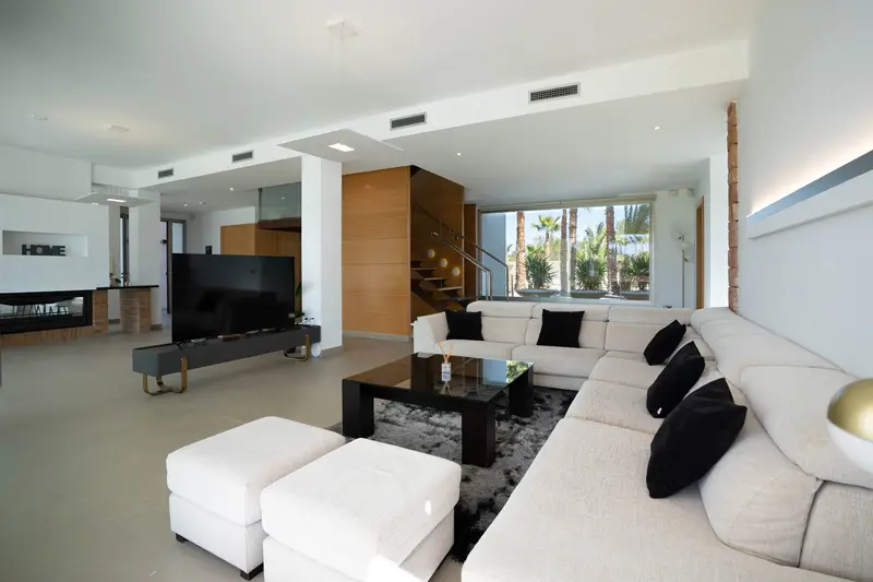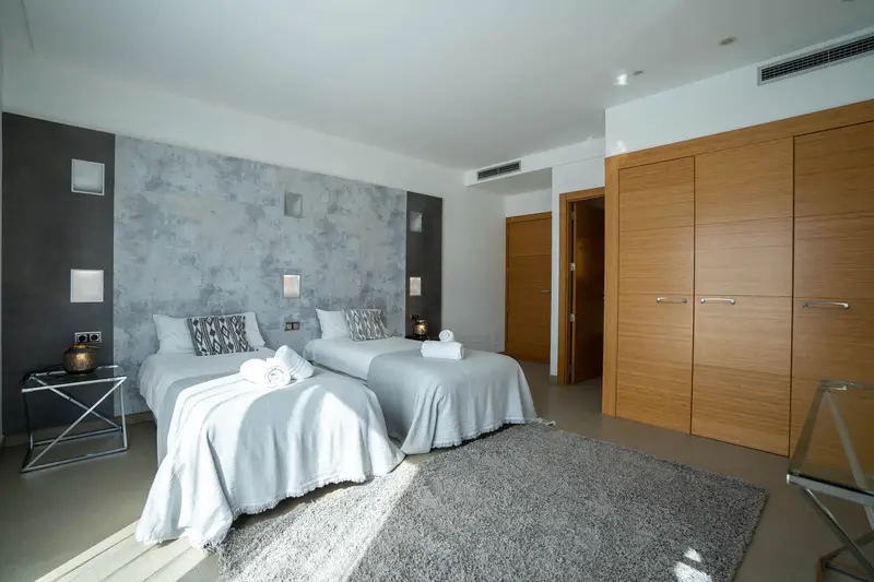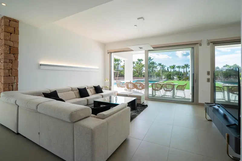 Can Sonatra is a contemporary retreat that blends functionality, style, and wellness in one unique space. This modern-design villa features spacious areas filled with natural light, cozy bedrooms with high-end finishes, an open-plan kitchen with breakfast bar, and several terraces designed for relaxing or entertaining. What truly sets Can Sonatra apart is its wellness area: equipped with a private gym, chill-out zone with immersive LED lighting, and thoughtful details that elevate the stay. An ideal choice for those seeking comfort, privacy, and an exclusive setting in Ibiza.